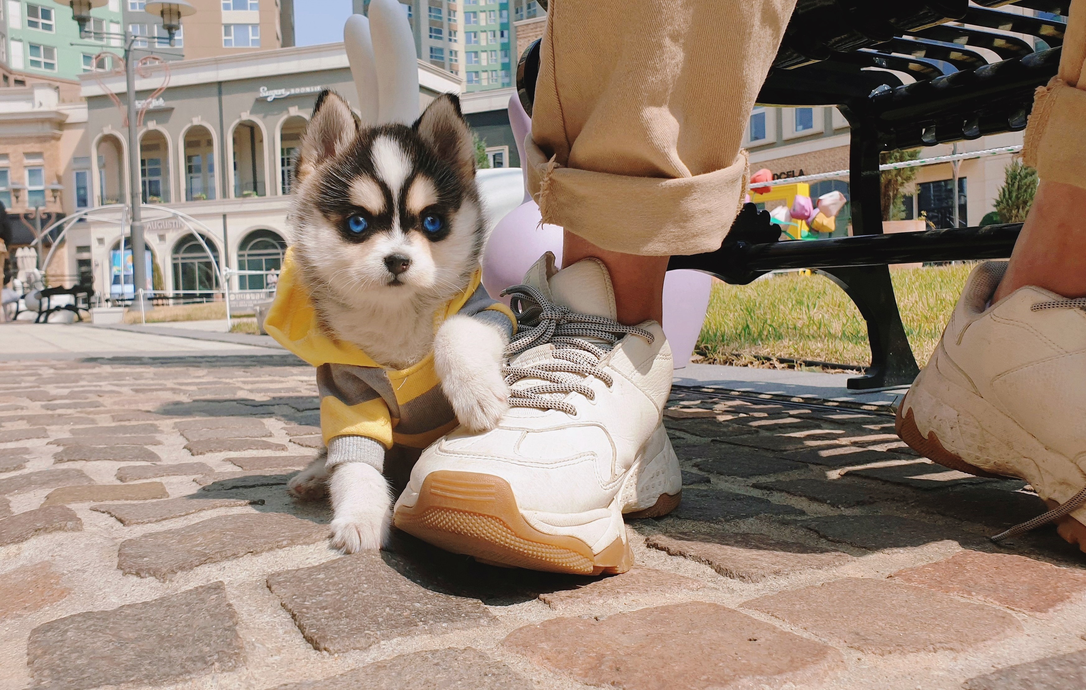 허스키의 눈과 포메라니안의 귀여운 얼굴이 조화된 미니폼스키는 어디서나 주목받는 외모를 자랑합니다.
