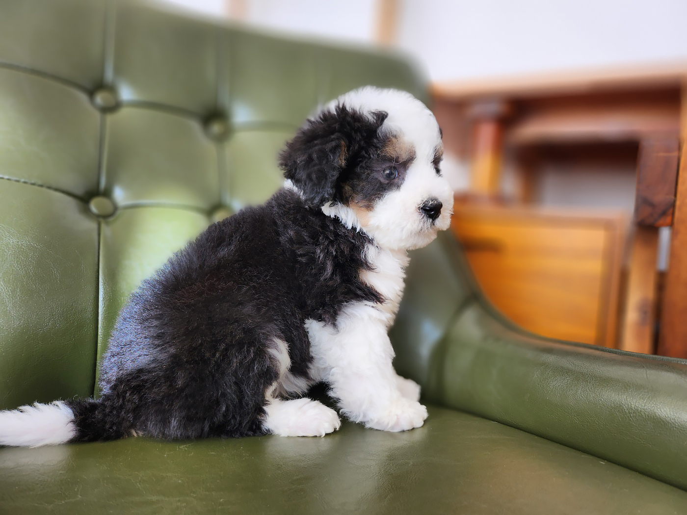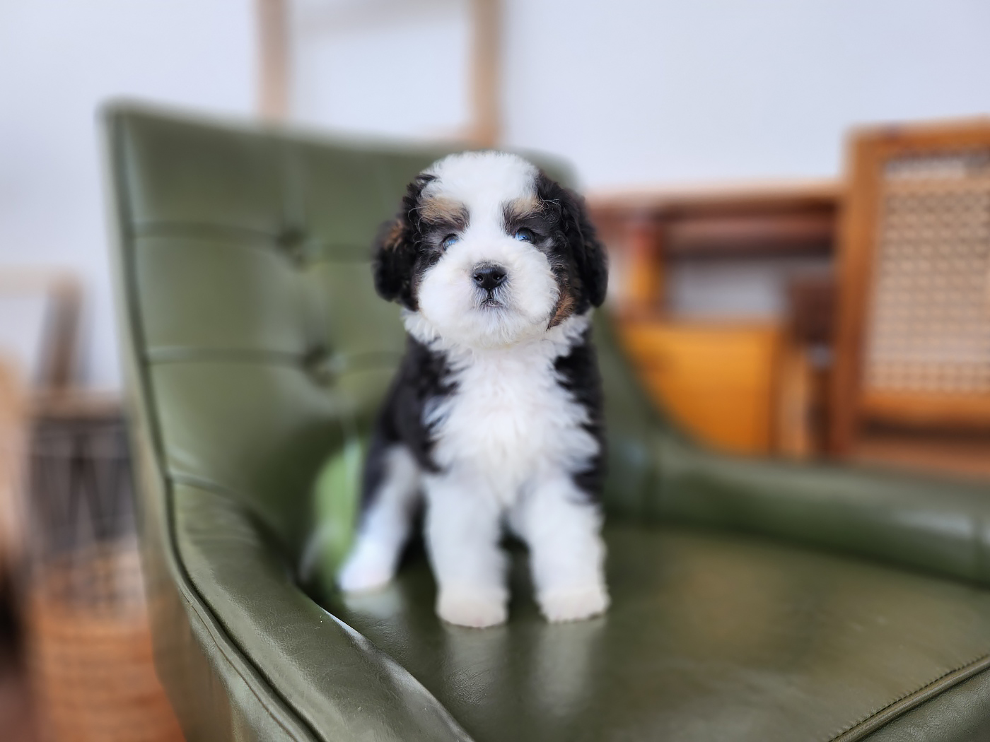 버니두들은 푸들과 버니즈 마운틴 독의 교배종으로, 뛰어난 지능과 온순한 성격을 갖춘 반려동물입니다. 특히 털이 곱슬거리거나 웨이브가 있는 경우가 많아 알러지를 유발하는 확률이 낮아, 많은 사람들이 반려견으로 선택하는 품종 중 하나입니다.