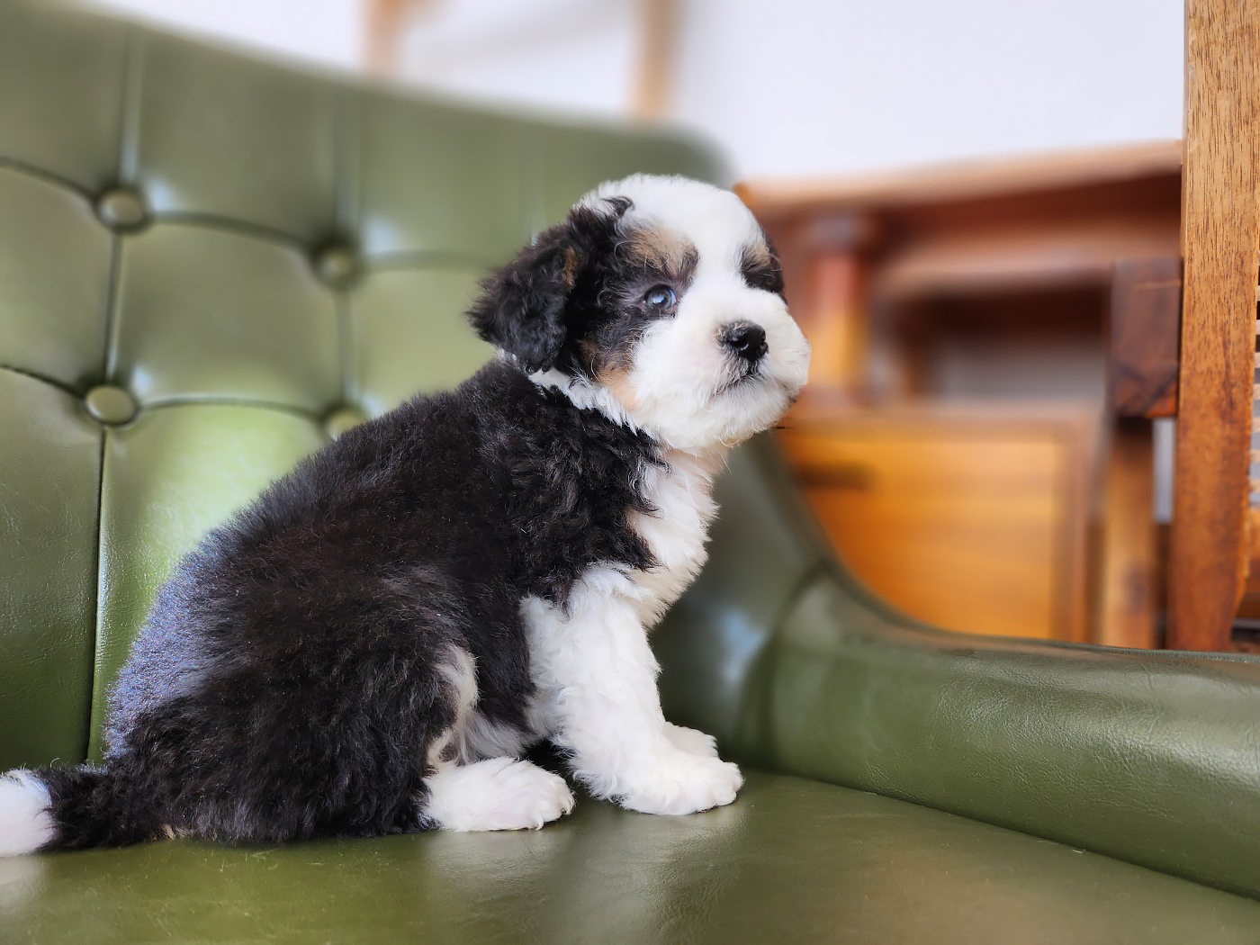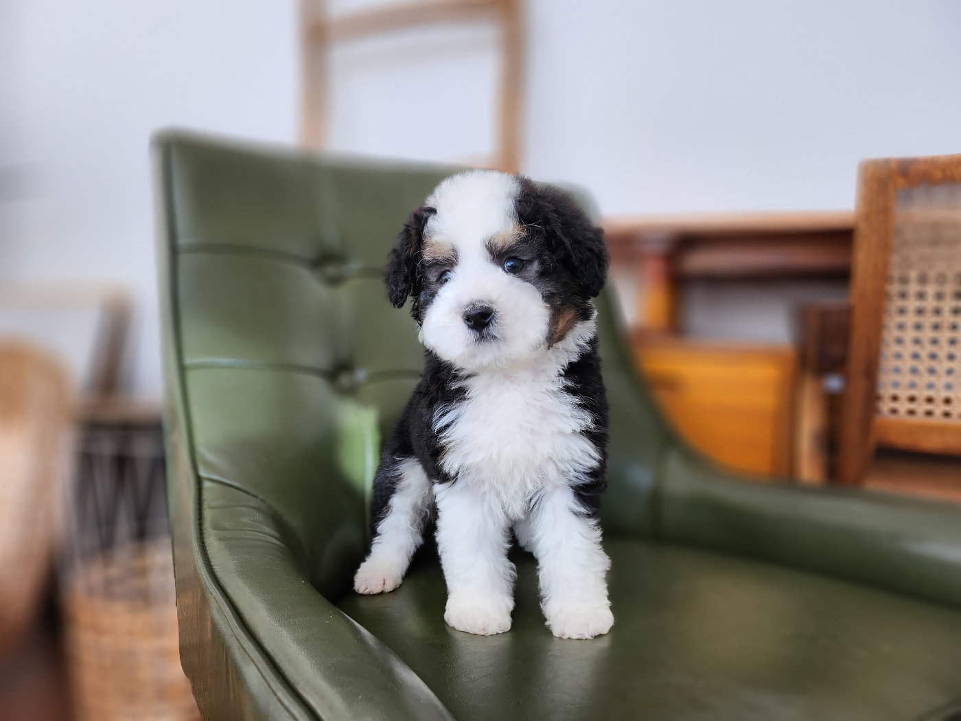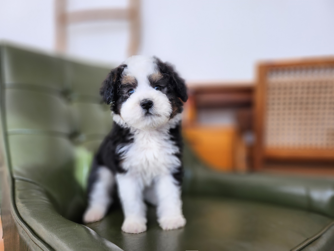 버니두들은 푸들과 버니즈 마운틴 독의 교배종으로, 뛰어난 지능과 온순한 성격을 갖춘 반려동물입니다. 특히 털이 곱슬거리거나 웨이브가 있는 경우가 많아 알러지를 유발하는 확률이 낮아, 많은 사람들이 반려견으로 선택하는 품종 중 하나입니다.