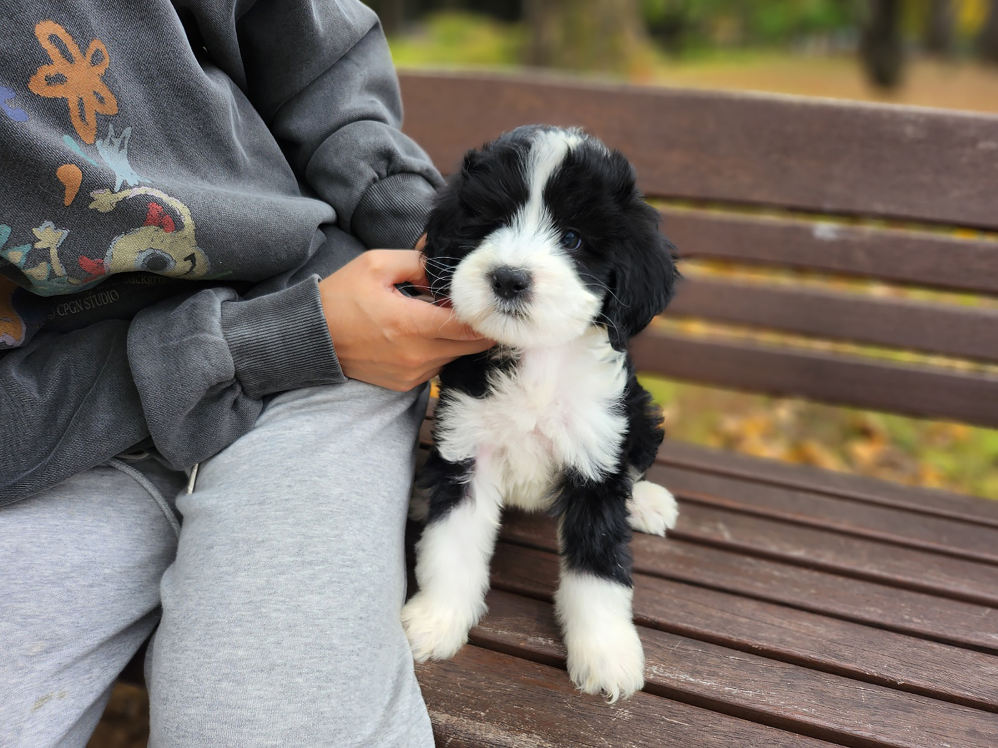 코봉이는 블랙과 화이트가 조화를 이루는 파티 컬러를 지닌 강아지로, 그 깔끔한 색상 덕분에 돋보이는 외모를 자랑합니다. 블랙과 화이트의 대조적인 색감이 골든두들의 부드러운 털과 어우러져 더욱 고급스럽고 세련된 이미지를 만들어냅니다. 특히 코봉이와 같은 블랙파티 모색은 흔하지 않아 더욱 특별함을 느낄 수 있습니다.