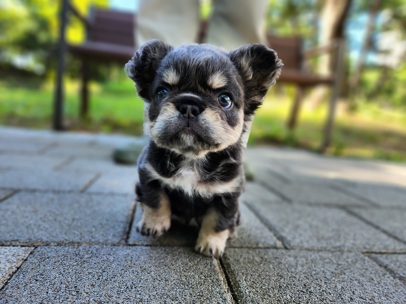 장모 프렌치 불독은 긴 털 덕분에 더욱 풍성하고 부드러운 외모를 가지고 있습니다. 특히 귀와 목, 가슴 부분의 긴 털이 독특한 느낌을 줍니다. 일반적인 프렌치 불독이 짧은 털을 가진 것과 달리, 장모 프렌치 불독은 부드럽고 털이 길어 더욱 우아한 느낌을 자아내요. 블루탄 모색의 장모 프렌치 불독은 깊고 고급스러운 컬러감 덕분에 특별한 존재감을 더해줍니다.