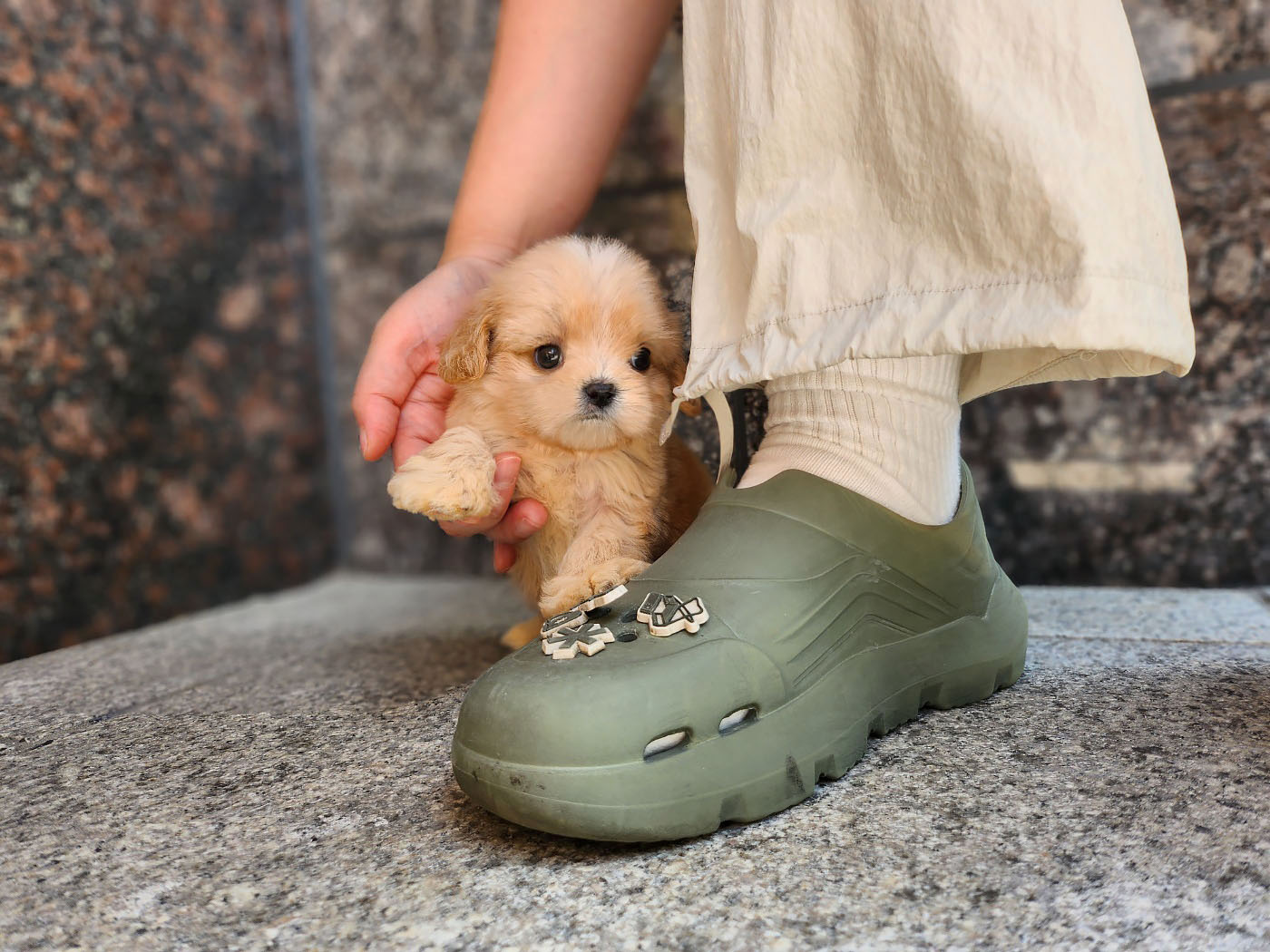 카바푸는 다 자라도 4~7kg 정도로 자라는 소형견입니다. 부담되지 않는 크기 덕분에 아파트나 실내 환경에서도 쉽게 키울 수 있어요. 크지 않으면서도 적당한 에너지를 가지고 있어 반려인의 라이프스타일에 맞춰 활동적인 시간을 함께 보낼 수 있습니다. 특히 카바푸는 푸들의 지능과 킹 찰스 스패니얼의 다정함을 물려받아 애교 많고 사람을 좋아하는 성격을 가지고 있습니다.