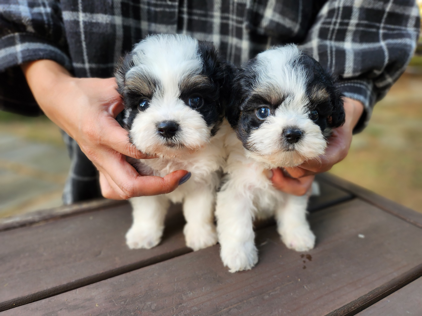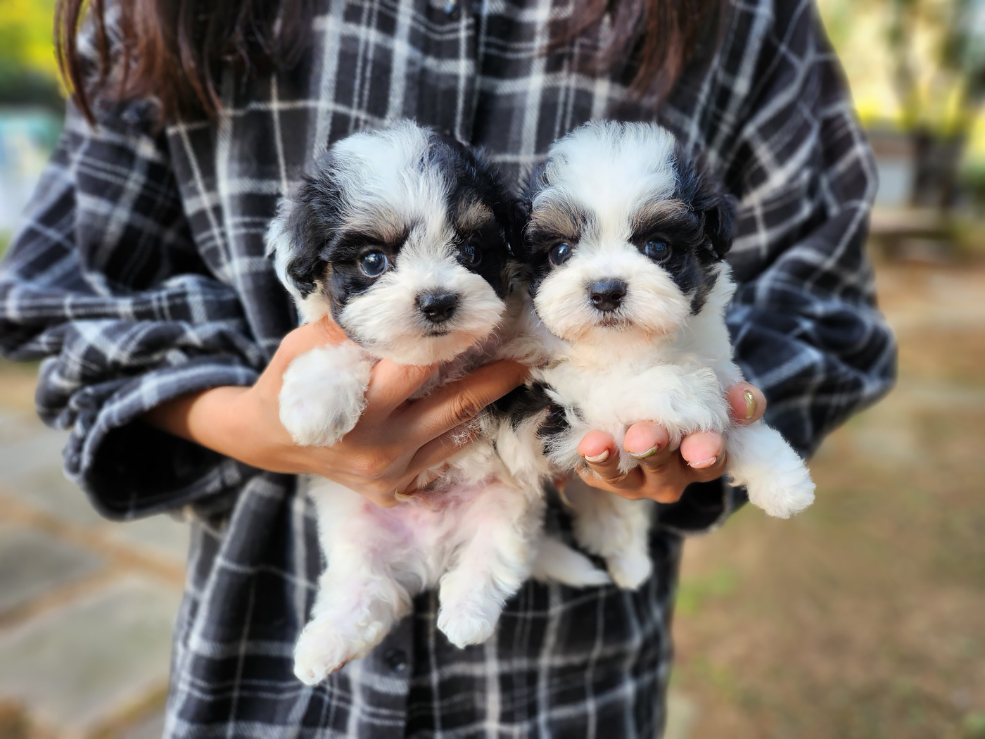 오늘 소개할 푸숑분양 친구들은 귀여운 두 달 된 형제들입니다😁 각각 다른 매력을 가진 쿠키&머핀 형제들은 블랙&화이트 파티컬러의 독특한 털 색상을 자랑하며, 특히 눈썹이 포인트로 더욱 매력적이네요! 푸숑은 푸들과 비숑프리제의 장점을 모두 가진 특별한 믹스견으로, 푸숑친구들은 매력을 제대로 보여주고 있답니다 😊